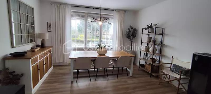 Plancher bois remis à neuf qui donne du cachet à cette maison.