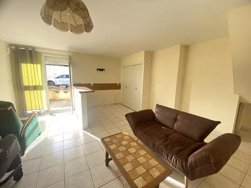 Villa scindée en deux logements l'un de 50m2 en rez-de-chaussée, composé: d'un salon 25m2, cuisine, 2 chambres avec placard, salle d'eau.