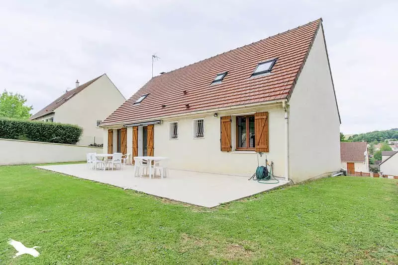 Pavillon familial elevé sur sous-sol total situé au calme dans une impasse dans le charmant village de Tessancourt : Toutes commodités de plain pied: séjour/cheminée,cuisine,3chambres,2 salles de bains,WC.A l'étage:palier desservant 4 chambres, salle d'eau,dressing,WC.Magnifique terrasse plein SUD, grand terrain de plus de 1700m2. Proposition d'aménagement virtuel non contractuelle en dernière photo.