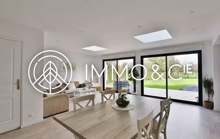 Maison semi mitoyenne en semi plain pied de 155 m² habitables sur 555m2, 4chs, 2 sdb, cave, jardin, parkings. Vue imprenable sur la campagne – Luminosité, confort et prestations de qualité