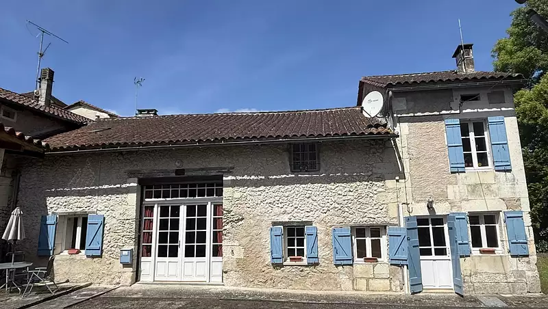 La maison principale offre un espace de vie ouvert avec murs en pierre apparente et poutres en bois. Un gîte attenant d’une chambre dispose d’un salon avec poêle à bois — idéal pour accueillir des invités ou envisager une activité locative (possibilité d'exploitation d'un gîte - sous réserve de l'obtention des autorisations nécessaires).