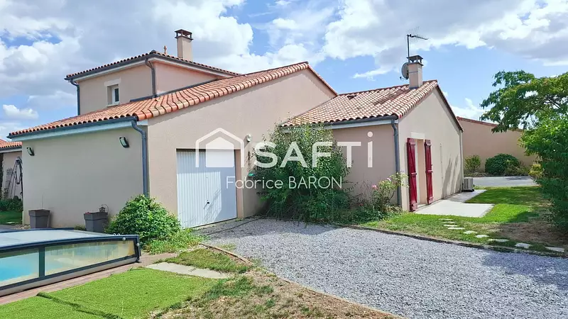 Cette demeure se distingue par sa piscine avec abris coulissant, ajoutant une touche de loisirs et de détente à la propriété. Son agencement soigné et ses équipements en font un lieu idéal pour allier confort de vie et moments de convivialité en famille ou entre amis.