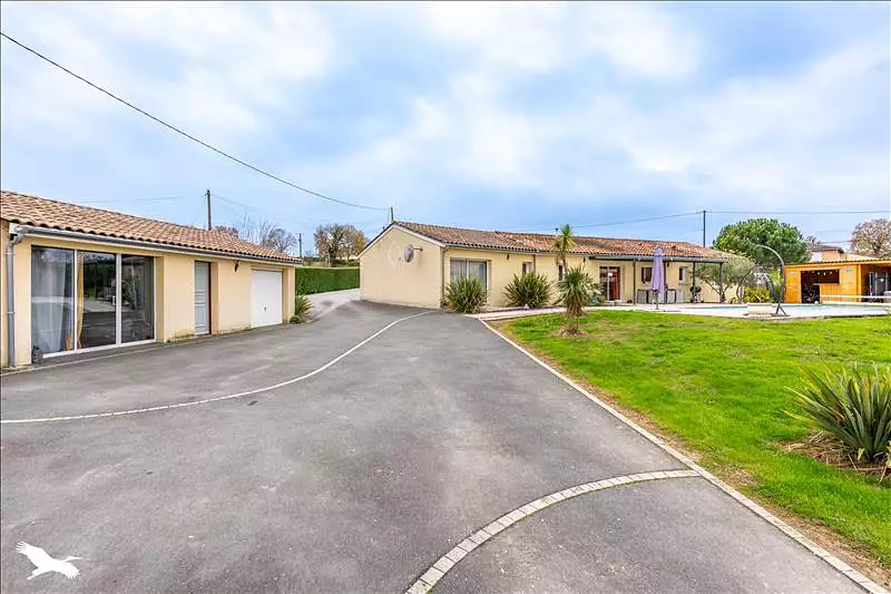 A quelques minutes des commodités, maison traditionnelle de 2010 offrant : cuisine ouverte sur salon/séjour, trois chambres dont une avec salle d'eau privative, salle de bains, wc, garage, jardin avec piscine, pool-house, terrain de pétanque, parcelle de plus de trois hectares de terre attenant.