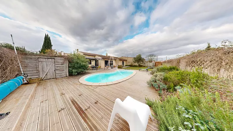 A l'ouest de Carcassonne, au coeur d'un village dynamique offrant toutes les commodités, découvrez cette maison de plain-pied située dans un hameau paisible à proximité de Pezens. La maison dévoile de très beaux volumes et un cadre de vie chaleureux. Vous y trouverez cinq chambres confortables, deux salles d'eau fonctionnelles ainsi qu'une vaste pièce de vie lumineuse, ouverte sur l'extérieur pour profiter pleinement. Une buanderie vient compléter l'ensemble pour un confort optimal. A l'extérieur, le jardin propose un véritable espace de détente : piscine, terrasse et coin barbecue vous invitent à vivre des moments ensoleillés en famille ou entre amis, au rythme des saisons. Un grand garage d'environ 150 m² offre de multiples possibilités : stationnement, stockage, atelier, loisirs? Anciennement loué, il peut également constituer une source de revenus supplémentaire. Jonathan : " Un joli bien à mettre à son goût, environnement calme ! " Visite virtuelle sur demande "Chers confrères, nous partageons tous nos biens, vous avez un client ? Nous avons l'Adresse ! Contactez-nous !" Thomas SARDA (EI) Agent Commercial - Numéro RSAC : 900 478 314 - .