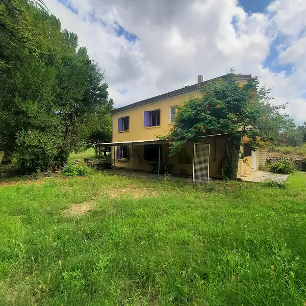 SAUVE - SPACIEUSE VILLA - 3179m2 divisibles Construite en 1970 Cette villa propose sur 156 m2 habitables env: RdC: Un garage de 35 m2, Un hall d'entrée, une buanderie, un petit appartement de type F3 de 50 m2, composée d'une cuisine meublée ,deux chambres, une salle d'eau et des toilettes.