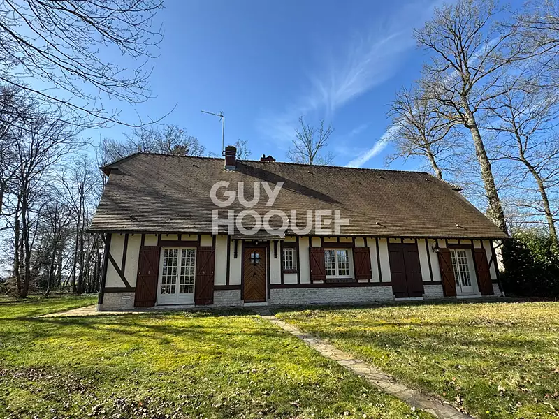 15 kms de VERNEUIL - Proche BRETEUIL - Maison d'habitation de 156 m² comprenant : entrée, séjour avec cheminée ouverte, cuisine aménagée, 4 chambres, bureau, salle de bains, salle d'eau avec WC et WC indépendant avec lave-mains. A l'étage : grande pièce (+100 m²) à terminer d'aménager avec point d'eau. Chauffage électrique. Double vitrage bois. Sous-sol de 90 m² comprenant : salon avec cheminée ouverte, cuisine, cave, atelier et garage. Le tout sur un terrain en partie boisé, sans vis-à-vis de 6 233 m². (5.83 % honoraires TTC à la charge de l'acquéreur.)