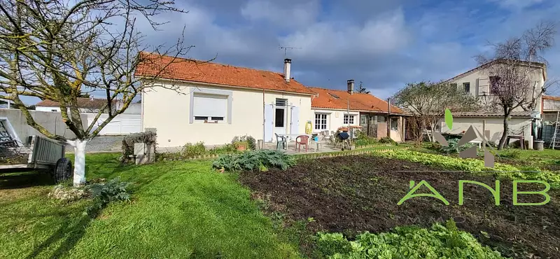 Maison principale : séjour lumineux, cuisine équipée, salle d'eau, deux chambres, garage et jardin privatif — parfait pour une résidence à l'année ou une location saisonnière