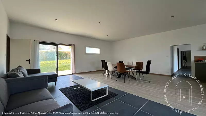 Votre Agence XAVIER CLERJAUD IMMOBILIER vous répond du lundi au samedi de 9h00 à 19h00 sans interruption. Maison familiale de plain-pied 5 chambres situé sur la commune de CIRIERES à 5 minute de CERIIZAY et à 10 minute de BRESSUIRE comprenant: Une belle pièce de vie de 51 m2 avec cuisine aménagée, une buanderie, 5 chambres dont une suite parentale, une salle d'eau, un WC ainsi qu'un garage de 37 m2. Le tout sur un parcelle de 1360 m2. CÔTÉ TECHNIQUE : Chauffage au sol par pompe à chaleur, installé depuis janvier 2025 Electricité récente Assainissement au norme (tout à l'égout) Contact : Xavier CLERJAUD - 06 37 45 74 70 - (4.71 % honoraires TTC à la charge de l'acquéreur.)