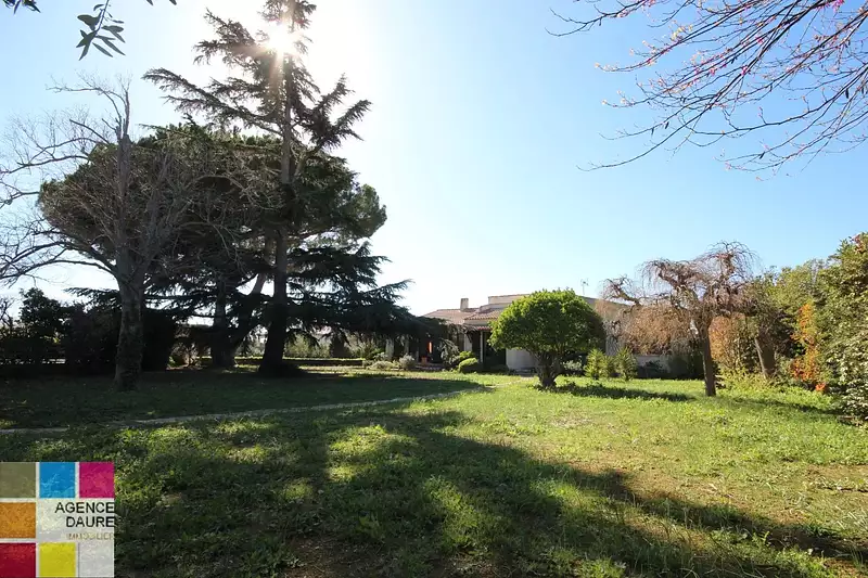 Au centre du village, sur 1817 m² de terrain arboré villa 4 faces comprenant au hall d'entrée, salon séjour, bureau, cuisine independante, 3 chambres, salle de bain. A l'étage combles aménagés en 1 piece, 1 chambre et 1 piece avec un point d'eau et wc. Garage de 30 m², petite dépendance, forage. Visite virtuelle disponible sur demande.