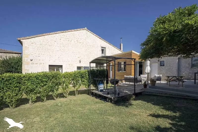 Cette maison charentaise de 160 m² composée d'une cuisine aménagée-équipée ouverte sur séjour avec un insert, de trois chambres et une suite parentale (avec une avec salle d'eau, dressing et bureau), d'une salle de bains, wc et d'un cellier. La propriété bénéficie d'un atelier et d'un parc clos et arboré, avec piscine hors sol. Proposition d'aménagement virtuel non contractuelle en dernière photo.