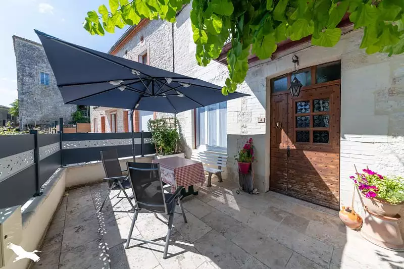 Maison de village en pierre, composée d'une entrée, une cuisine avec salle à manger, un séjour, une arrière cuisine avec accès direct à la terrasse extérieur de plus de 50m² et une pièce buanderie avec un WC séparé. Coté nuit se trouvent 3 chambres, un bureau et une salle d'eau récente avec WC Proposition d'aménagement virtuel non contractuelle en dernière photo.