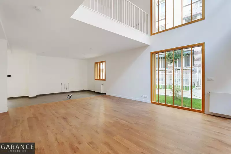 Le rez-de-chaussée, donnant sur un le jardin privatif de 37 m2, s'ouvre sur une entrée menant à un vaste séjour de 52 m² avec salle à manger et cuisine ouverte, une buanderie et des WC séparés. Traversant, il profite d'une luminosité optimale grâce à de larges baies vitrées.