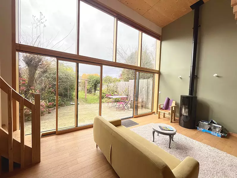 A VENDRE, SAINT-BRIEUC, quartier Cesson, à proximité du bourg, maison des années 50 de 157m2 habitables, entièrement rénovée en 2018/2019, sur 333m2 de terrain clos de murs, comprenant en rez de chaussée: entrée, pièce de vie ouvrant sur terrasse et jardin à l'ouest avec poêle à granulés, cuisine ouverte Aménagée et Equipée, buanderie, wc avec lave-mains, chaufferie au gaz, garage; au 1er étage: coursive/mezzanine (37m²), chambre avec placards, salle de bains, wc; au deuxième étage : palier, 4 chambres dont deux avec placards, salle d'eau avec wc; grenier au dessus; Dépendances dans le fond de la parcelle avec accès indépendant et stationnements, TRÉS BON ÉTAT GÉNÉRAL, PROCHE PLAGE, ECOLE et COMMERCES, JOLI JARDIN CLOS, CHARME. (3.99 % honoraires TTC à la charge de l'acquéreur.)