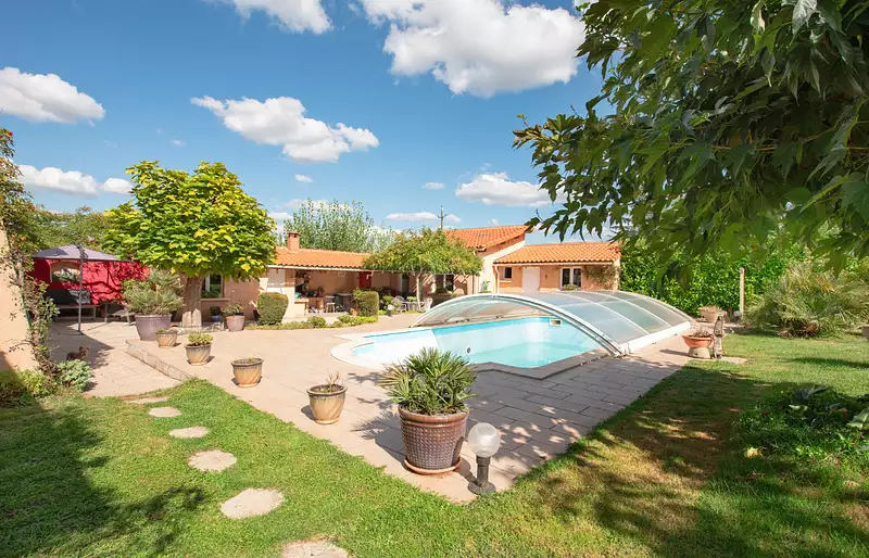 Cette maison est composée de 5 chambres, 1 garage, 1 pool house, 1 atelier de bricolage, 1 cuisine d'été…