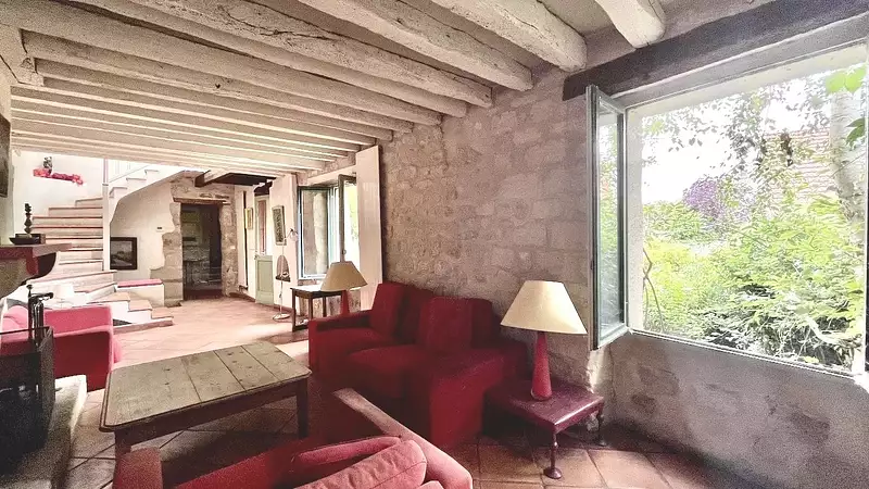 En rez-de-jardin, une belle pièce voutée, ouverte sur le jardin.