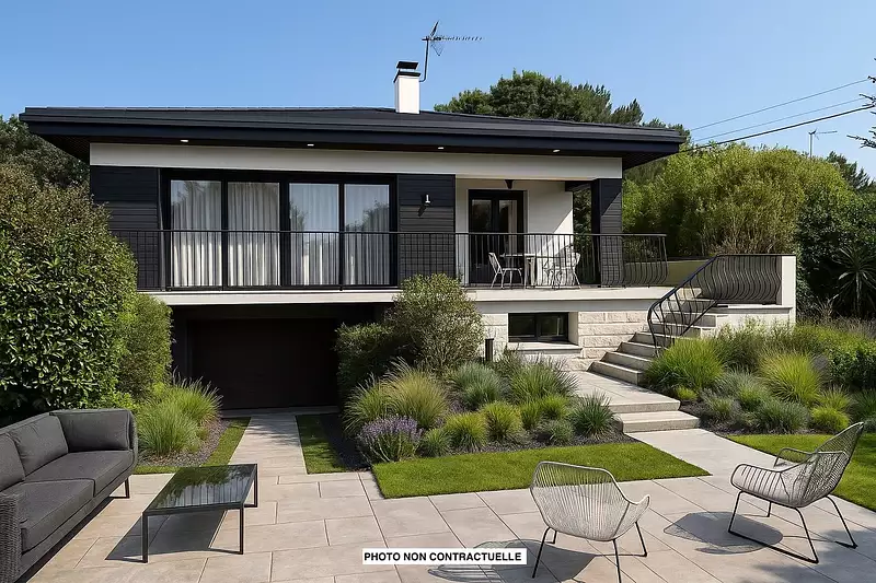 b Diffusion Impression Descriptif détaillé du bien affiché sur votre site web. Mérignac 33700 en plein coeur du célèbre Parc Féau à l'abris de tous les regards sauf des oiseaux, au calme et à proximité des transports, commerces, écoles sur une parcelle d'env. 1108m2. Cette maison atypique est adaptée à différents projets de vie : - une grande famille avec des adolescents en recherche d'indépendance, - une famille avec plusieurs générations sous le même toit, - un plateau pour habiter, un plateau à louer en totalité ou en format colocation, - un plateau pour habiter, un plateau pour abriter une activité professionnelle.... A l'étage hauteur sous plafond 2,70m : entrée spacieuse rangements, pièce de vie plein sud donnant sur terrasse avec cheminée, une cuisine indépendante équipée, 3 grandes chambres env. 14m2 dont une avec un point d'eau, salle de bains, wc, cellier. Au RDC hauteur sous plafond 2,20m : 1 chambre env. 13m2, bureau ou chambre env. 17m2, dégagement, wc, cuisine, salle d'eau, cave, garage env. 36m2 et attenant un atelier avec fenêtre et porte extérieur env. 31m2. Double vitrage avec volet électrique, chaudière gaz -10ans, portail électrique... maison très saine et bien entretenue il ne vous reste qu'à laisser libre court à votre imagination pour la re moderniser. Appentis extérieur avec barbecue pour profitez de ce magnifique endroit paisible et calme. HONORAIRES INCLUS CHARGE ACQUÉREUR : 4% TTC (PRIX 670 000€ HORS HONORAIRES)
