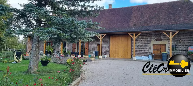Charmante longère en briques pleine de caractère, avec de beaux volumes généreux, édifiée sur un vaste terrain clos et arboré de 6 728 m².