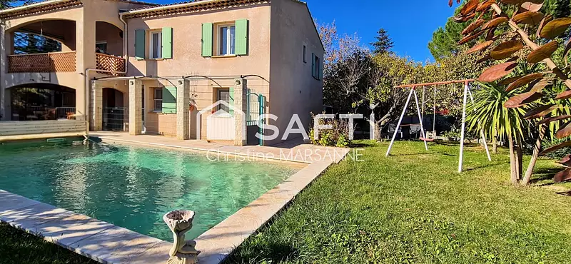 Implantée sur un terrain arboré de 780 m² avec piscine maçonnée, elle bénéficie d’un environnement calme, sans vis-à-vis, à deux pas des écoles, commerces et transports.