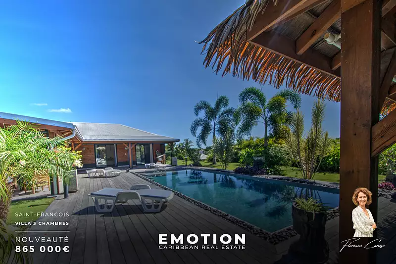 Villa 3 chambres, piscine, terrain de 1957 m2 à Saint- François (Guadeloupe)