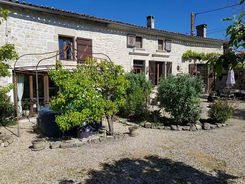 Belle charentaise restaurée avec goût sur une parcelle close d'environ 500m2 aménagée en joli jardin de village.