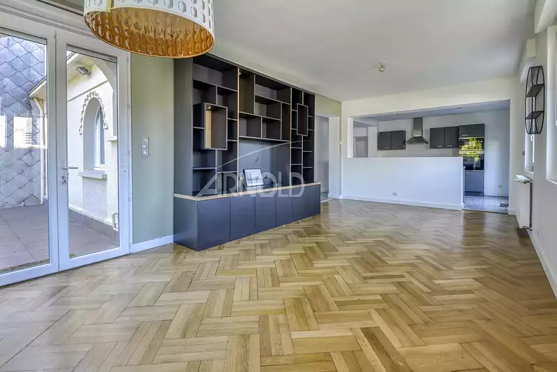 Dès l’entrée, une grande pièce lumineuse et spacieuse vous invite à découvrir un lieu pensé pour le bien-être de toute la famille. Sur votre gauche, après quelques marches, s’ouvre un vaste espace de vie avec parquet, baigné de lumière grâce à une triple exposition. La pièce donne directement sur la terrasse et le jardin paysager, sans vis-à-vis, parfaits pour profiter des beaux jours en toute tranquillité.