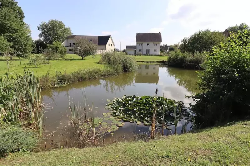 Cette maison non mitoyenne se situe au calme, en bordure de rivière, dans une petite rue donnant accès aux étangs. Vous bénéficierez également des commodités à proximité (école, épicerie, café-bar-tabac-presse et marché dans le village et autres commerces et entreprises aux alentours).