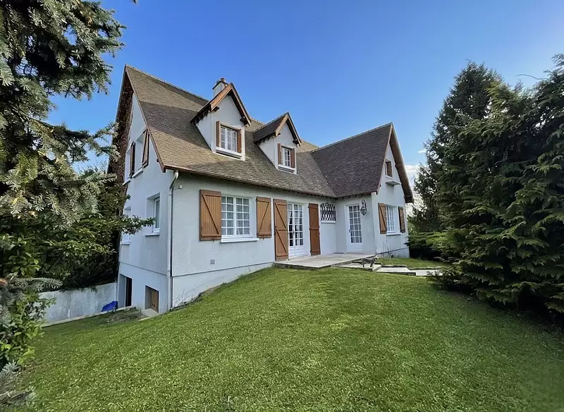 PROCHE TOUTES COMMODITES Pavillon indépendant édifié sur 1700m² de terrain comprenant: entrée, séjour double avec cheminée, cuisine aménagée et équipée, 2 chambres, salle de bains, wc Au 1er étage: palier, 3 chambres, salle d'eau, wc , 2 petits greniers. Sous-sol total avec garage, salle de jeux, chaufferie et buanderie.