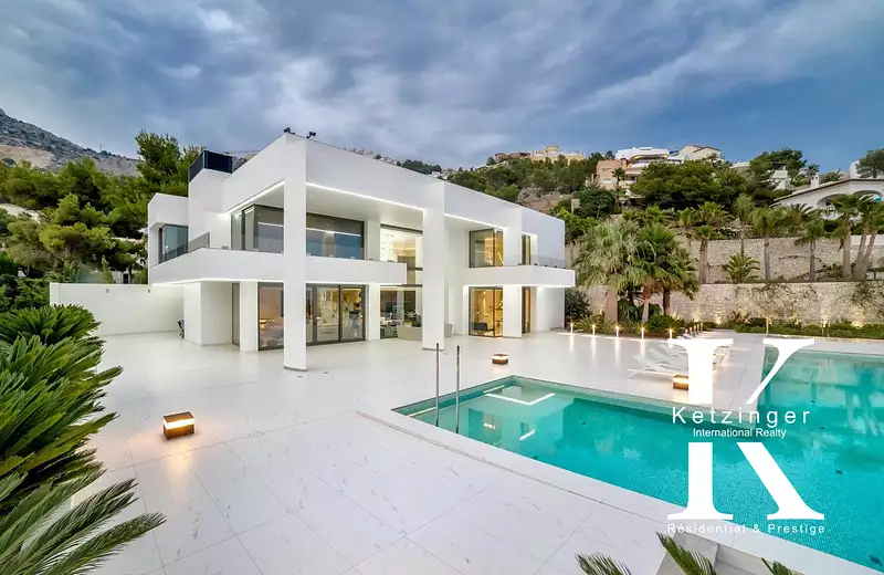 Implantée dans le quartier résidentiel très prisé d'Altea Hills, au sein d'une résidence sécurisée 24h/24, cette villa ultra-moderne a été imaginée par le célèbre architecte espagnol Carlos Gilardi et construite par l'un des meilleurs bâtisseurs de la région, avec des technologies de pointe et des matériaux de qualité supérieure.