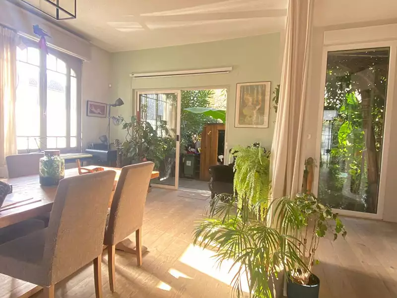 Gironde (33100) BORDEAUX, A vendre maison de 5 chambres, dont une au rez-de-chaussée. Prix TTC 669000 euros dont 3.08% de commission charge acquéreur, soit 20000 euros TTC (pour 649000 euros prix net vendeur). Belle situation au coeur du quartier recherché de Bordeaux Bastide, pour cette maison en pierre des années 40 que vous présente Myriam GALMAR. Proche du Tram A station Thiers Benauge, des écoles et de toutes les commodités, sa rénovation réussie permet d'allier l'ancien et le contemporain. Parquets, carreaux de ciment, grands volumes et belles luminosité sont mis à l'honneur grâce à un goût très sûr. Le confort moderne n'est cependant pas en reste pour votre agrément. Du beau séjour lumineux, vous accèderez au jardin / terrasse qui vous procurera l'intimité d'un jardin de curé. Sa grande cuisine familiale, ses 5 chambres , dont une au rez-de-chaussée, et ses deux salles de bains en font une maison résolument familiale, à moins que vous souhaitiez exercer à domicile une profession libérale, ou louer en Airbnb... Une belle cave de 30m² ne demande qu'à être aménagée. Possibilité de location de parking à toute proximité.
