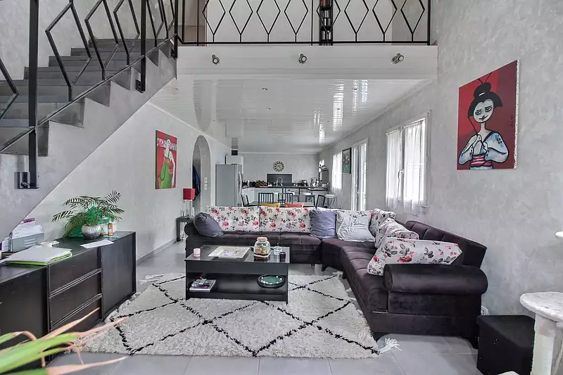Cette pièce de vie agréable, familiale et lumineuse (grâce à ses 6 grandes entrées de lumières) est idéale pour vivre des moments conviviaux entre amis et famille !