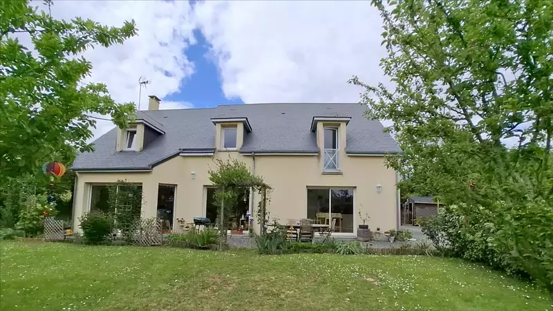 Dans un lotissement, pavillon construit en 2007, couvert en ardoise, comprenant :. Au rez-de-chaussée : hall d'entrée, salle - salon (42m² env.), cuisine aménagée et équipée, dégagement desservant : WC, une salle d'eau, une chambre.. A l'étage : mezzanine, lingerie, trois chambres, salle de bains.Garage attenant : 26m² en. avec partie cave.Jardin planté autour.Le tout pour une surface cadastrale de 890m².A titre d'information, il est prévu que les locataires en place quittent la maison au plus tard le 31 juillet 2025. Si un client acquéreur, souhaitait investir, les locataires seraient disposés à rester et pourraient signer un nouveau bail avec le prochain propriétaire;Les informations sur les risques auxquels ce bien est exposé sont disponibles sur le site Géorisques : www. georisques.gouv.fr
