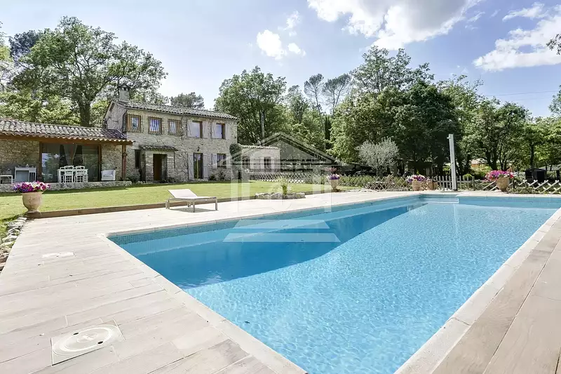 propriété en pierre entièrement rénovée au goût du jour, comprenant hall séjour cuisine 2 chambres avec salle de bains, dressing,grande suite parentale avec dressing, salle de bains et terrasse de 40 m².Bureau,garage piscine. Pompe à chaleur et fosse septique neuves.