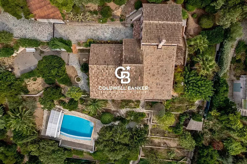 Nichée au cœur d’un secteur résidentiel paisible et recherché, cette villa d’environ 160 m² offre un superbe potentiel au sein d’un cadre de verdure exceptionnel. Implantée sur un terrain paysager et arboré de 1 900 m², la propriété bénéficie d’une vue dégagée avec aperçu mer, embrassant le port de Cavalaire et l’île du Levant. Le vaste séjour s’ouvre sur une grande terrasse ensoleillée offrant un panorama sur les collines environnantes. La maison dispose également d’une cuisine indépendante, de plusieurs chambres et de différents espaces modulables selon vos envies. À l’étage, une dépendance offre de multiples possibilités d’aménagement, suite parentale, bureau, ou appartement indépendant — idéale pour accueillir famille et amis ou créer un espace de travail privilégié. Un rafraîchissement complet permettra de révéler toute la valeur et le charme authentique de cette villa, parfaite pour un projet de rénovation personnalisé dans un environnement calme et verdoyant. À l’extérieur, le jardin méditerranéen accueille une piscine sans vis-à-vis, un boulodrome et un espace barbecue, invitant à la détente et à la convivialité dans une atmosphère de sérénité absolue.