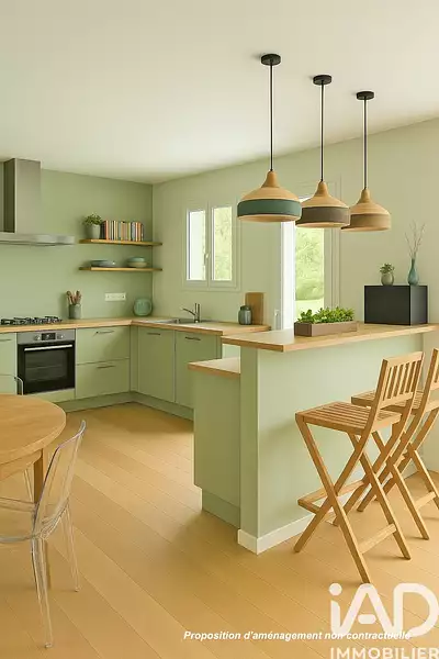 Implantée sur un terrain de 2006 m², la maison profite d’une vue dégagée sur la nature, sans vis-à-vis, avec une superbe piscine pour les beaux jours.
