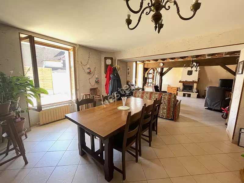 Nous vous proposons sur la commune de CHABRIS : belle longère des années 1880, d'environ 160 m², qui se compose au rez-de-chaussée, d'un spacieux et lumineux salon - séjour de près de 60 m² avec cheminée insert, une cuisine aménagée et équipée, une chambre de 13 m², un couloir accédant à une salle d'eau, un WC indépendant, l'espace chaufferie et un cellier / buanderie de 16 m². A l'étage, un palier desservant une grande chambre de 17 m² environ, deux chambres en enfilade de 9 et 10 m², et un WC indépendant. Sur le terrain, vous retrouverez un atelier, un hangar pouvant accueillir deux véhicules, anciens taies à cochon. Terrain d'environ 1 000 m² entièrement clôturé et avec double accès. Les + : vie de plain-pied, chauffage par pompe à chaleur de 2022, fenêtres en bois double vitrage. Rafraîchissement à prévoir et assainissement à remettre aux normes. Située dans un hameau au calme, à 5 minutes du centre-ville de CHABRIS où vous retrouverez toutes les commodités (boucherie, boulangerie, maison médical, épicerie... ) et les écoles jusqu'au collège. Pour plus de renseignements, contactez notre agence au 02.54.40.16.58 ! (6.50 % honoraires TTC à la charge de l'acquéreur.)