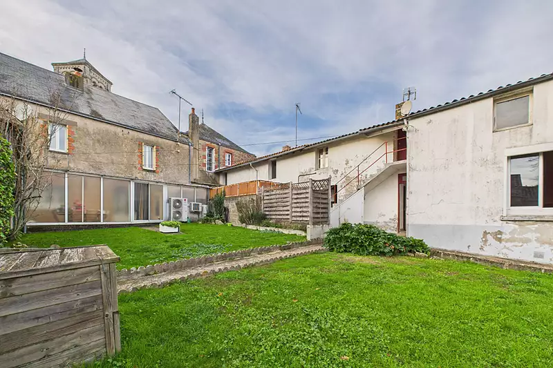 En plein bourg de DOMPIERRE, à proximité immédiate des commerces et écoles. Vieille bâtisse de 160 m² avec deux bâtiments annexes à réhabiliter (90 m² et 80 m²). La maison principale se compose ainsi : une entrée, un salon, une salle-à-manger, une cuisine refaite aménagée et équipée, arrière-cuisine, salle d'eau et un WC. A l'étage, un grand palier dessert 4 grandes chambres sur parquets, avec placards. Un WC avec point d'eau. Une véranda et une cave complètent les prestations de la maison. Une pompe-à-chaleur a été installé il y a 5 ans pour le chauffage. Si vous souhaitez accueillir de la famille ou louer indépendamment un logement, une ancienne maison est vendue dans le lot. Elle possède deux plateaux de 45 m². Au rez-de-chaussée, un salon, une cuisine aménagée et une salle d'eau avec wc. Les ouvertures sont en PVC double vitrage. A l'étage (entrée indépendante), un grenier pouvant être réhabilité en second logement. Enfin, un dernier bâtiment sert actuellement de garage (40 m² environ), avec un grenier partiellement aménagé de la même superficie. Deux places de stationnement devant. Un bien atypique, avec des travaux à prévoir, mais un très beau potentiel pour quelqu'un qui recherche de l'espace, à proximité de tout ! Contactez-nous au 02 51 40 34 07 pour une visite. (5.50 % honoraires TTC à la charge de l'acquéreur.) Julie COAT (EI) Agent Commercial - Numéro RSAC : 879555928 - La Roche-sur-Yon.