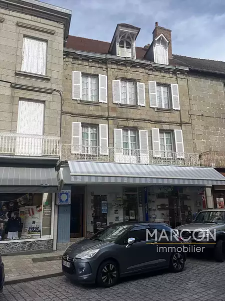 . FELLETIN. Réf: 89109. Bel immeuble comprenant en rez-de-chaussée: Un commerce (loué). 1er étage: cuisine, séjour, salle à manger, une chambre, dégagement, wc. 2ème étage (chauffage central au gaz): Palier avec coin cuisine, salon , deux chambres, salle d'eau-wc. 3ème étage: Palier, deux chambres, grenier sur le côté.