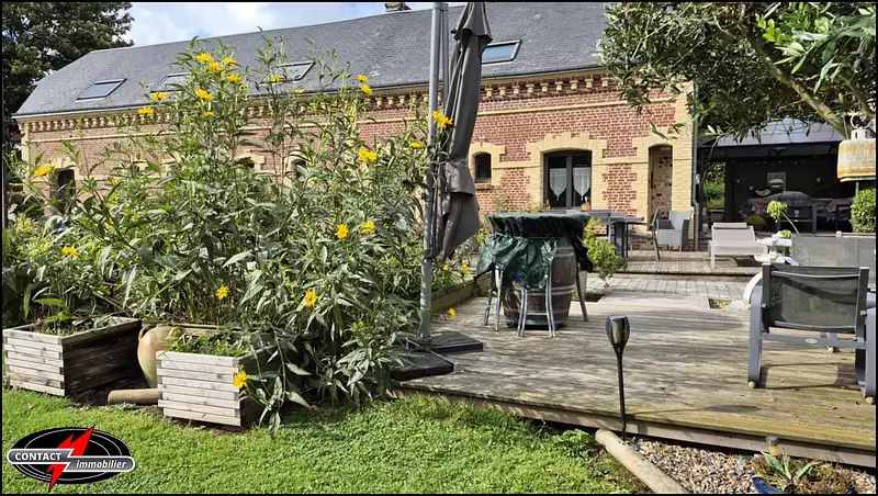 * A VENDRE CHEZ CONTACT IMMOBILIER * A 15 MIN DU HAVRE Ancienne grange entièrement rénovée et décorée avec goût d'envrion 160 m² habitables sur 4350 m² de terrain clos et arboré comprenant : belle entrée avec rangements, pièce de vie avec cheminée 60 m², cuisine aménagée, 4 belles chambres dont une avec douche, SDB, buanderie, grand garage, terrasses d'été et d'hiver, dépendance / bureau idépendant (idéal profession libérale). Les + RARE A LA VENTE / CALME ASSURÉ / CHARME DE L'ANCIEN / MÉRITE UNE VISITE. Pour de + amples informations, n'hésitez pas à nous contacter au 02 35 19 71 40.