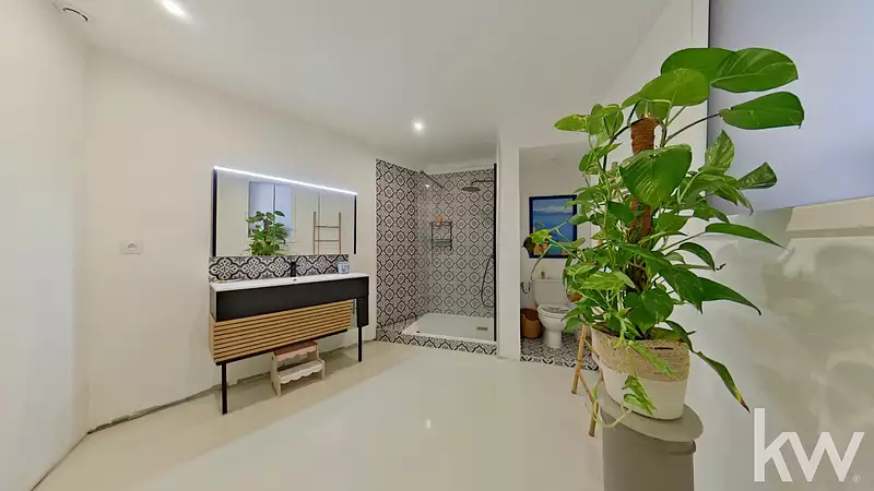 Elle comprend 3 chambres (avec possibilité d’une 4e), 2 salles d’eau, une belle cuisine équipée et un grand salon avec une mezzanine ouverte, idéale pour créer un coin lecture, un espace télétravail ou une salle de jeux.
