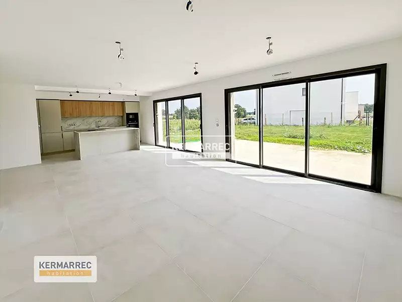 Kermarrec Habitation vous propose de découvrir cette maison neuve, spacieuse, lumineuse et aux prestations soignées. Avec ses 160 m² habitables et 190m² au sol, elle se compose de cinq chambres, dont une au rez-de-chaussée avec salle d'eau privative, ainsi qu'une vaste pièce de vie exposée Sud de 55 m² avec arrière-cuisine et accès direct au garage. A l'étage, vous trouverez trois chambres, une salle de bains et un WC, tandis que le dernier niveau offre une superbe chambre de 53 m² au sol avec arrivée d'eau. Le tout est livré clé en main, avec des finitions impeccables et des extérieurs paysagés. Profitez d'une exposition idéale, d'un bel espace extérieur sans vis-à-vis et de la vie de plain-pied pour encore plus de confort. Une maison familiale rare, à la fois élégante, fonctionnelle et immédiatement habitable. A visiter sans attendre ! Prix FAI : 469 900 euros dont 4.42 % honoraires TTC à la charge de l'acquéreur.