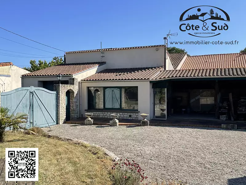 5 mn de La Jarrie, sur la commune de Montroy, jolie maison charentaise très bien entretenue comprenant au RDC : entrée (placard), WC, grande cuisine aménagée/équipée avec coin repas, salon/séjour (cheminée). A l'étage, une grande mezzanine dessert 3 belles chambres, une salle d'eau et WC. De nombreuses dépendances (grand garage, préau, véranda) en parfait état pourront convenir à un artisan ou autre activité professionnelle. Le tout sur un terrain clos de 1036 m2.