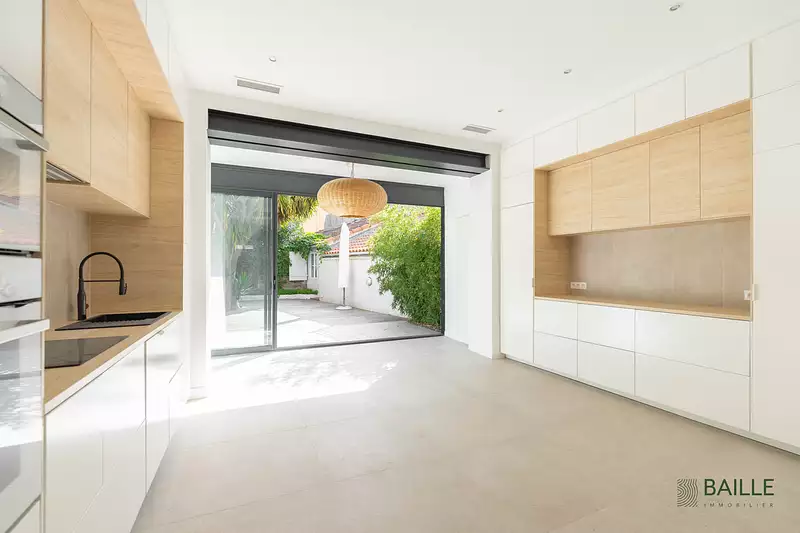 Maison d'environ 160m2 entièrement rénovée avec goût dans le coeur de Mazargues. Ce bien au calme absolu offre un vaste salon séjour cuisine de 45m2 ouvert sur l'extérieur de 43m2, une buanderie, un wc.