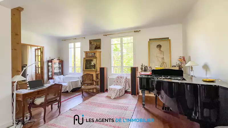NANTERRE. A deux pas du RER A (Nanterre Ville), du marché et des commerces du centre-ville, cette belle maison familiale d'environ 160 m² habitables vous accueille dans un environnement calme et privilégié, sur une parcelle arborée de 453 m². En retrait de la rue, l'entrée s'effectue par un large perron menant à un rez-de-chaussée lumineux de 85m2, composé d'un vaste espace de vie traversant de 58 m². Doté d'un parquet en chêne massif et d'une cheminée d'agrément, il présente une hauteur sous plafond généreuse de 3 mètres, offre charme, confort et vue verdoyante. La cuisine, indépendante et conviviale, peut accueillir un coin repas. Une entrée spacieuse et un cabinet de toilettes complètent ce niveau. L'étage sous combles, bien optimisé, dispose de trois chambres ensoleillées, d'une salle de bains avec WC, et d'un dressing. Une surface additionnelle d'environ 40 m² en partie basse des combles (non inclus dans la surface habitable) permet des espaces de rangement supplémentaires. En rez-de-jardin, avec une hauteur sous plafond de 2,45 m, une jolie vue sur le jardin et un accès additionnel à l'extérieur, vous trouverez une grande chambre et un bureau, ainsi qu'une salle d'eau privative avec toilettes. L'ensemble peut être isolé pour constituer un local professionnel. Une buanderie, une chaufferie et une cave complètent ce niveau technique et fonctionnel. A l'extérieur, plusieurs stationnements sont possibles devant et sur le côté de la maison. Le jardin bien exposé, offre différents coins de détente entre ombre et lumière. Un bien rare, alliant cachet, volumes généreux et situation idéale au coeur de Nanterre Pour plus de renseignements, contactez Adrien au 06_81_82_62_54. Conformément à l'article L. 561-5 du Code monétaire et financier, une copie de votre pièce d'identité ou de votre passeport sera demandée pour chaque visite. Les informations sur les risques auxquels ce bien est exposé sont disponibles sur le site Géorisques : www.georisques.gouv.fr