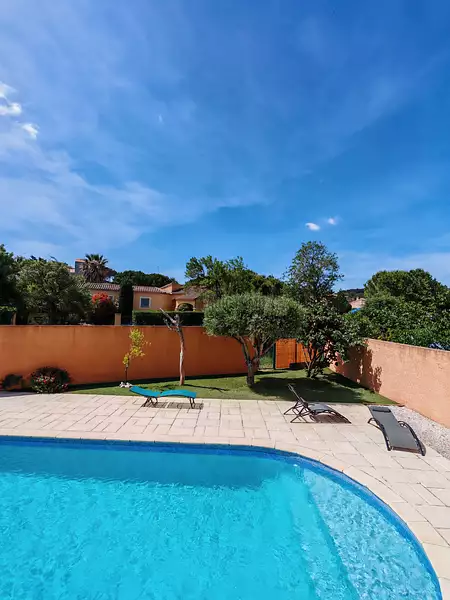 * Une piscine bordée d’une plage en pierre, invitant à la baignade et au farniente, agrémentée d'une cuisine d'été équipée (barbecue, douche et WC extérieurs) pour des réceptions conviviales.