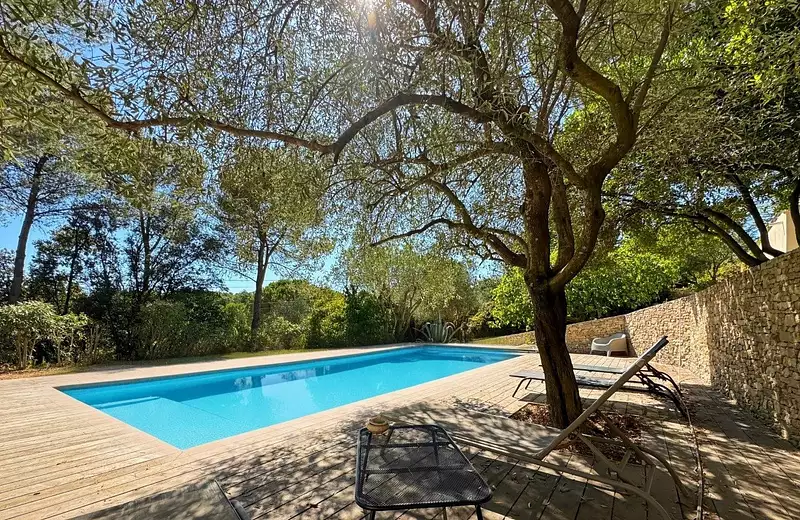 Le terrain, arboré et soigneusement entretenu, accueille une piscine de 10 x 5 mètres avec pool house équipé de WC, deux terrasses dont une de magnifique de 100 m2 exposée plein sud, une dépendance pour le stockage, un portail motorisé ainsi qu'une fosse septique.