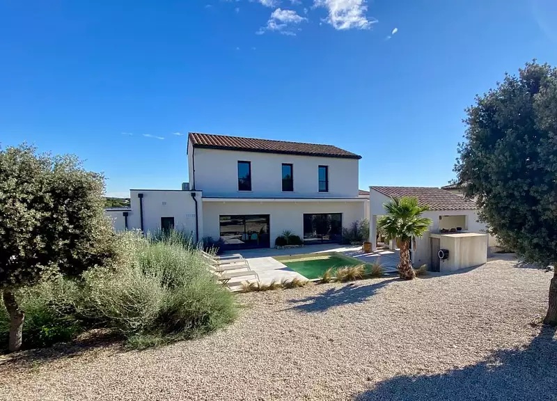 Située dans les collines de Nîmes, dans un quartier résidentiel haut de gamme et sécurisant, cette villa moderne, achevée en 2023, sur une parcelle de 800 m² vous offre un cadre de vie exceptionnel. À quelques minutes du centre-ville et de toutes les commodités, vous profiterez d'un environnement calme et intime.