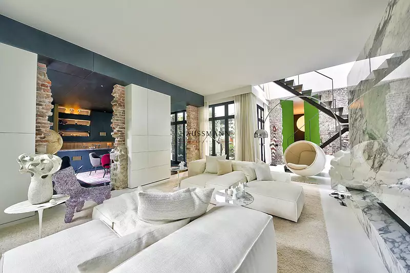 Emplacement d'exception au calme absolu au sein d'un luxueux ilot de verdure dans le coeur du Quartier des Abbesses / Montmartre, à deux pas du Metro Blanche, Sublime Duplex de 160.42 m2 habitables soit 158.62 m2 loi carrez entiérement renové et re structuré en 2020 par le proprietaire esthete et collectionneur dans un esprit contemporain incorporant des materiaux de grande qualité tels que des marbres de carrare, des parquets massifs, chauffage au sol au gaz. L'entrée se realise en passant deux grands portails discrets et securisés, le tout donnant sur une cour pavée et arborée, l'Appartement / Maison dispose d'une terrasse ainsi que d'une jungle de Bambous à l'abris des regards. L'espace de réception de 68 m2 au rez de chaussée dispose d'une magique cuisine de 29 m2 sur mesure réalisée par un menuisier avec du bois brulé, du laiton ainsi que du granit, la réception de 39 m2 avec cheminée jouit de 3.2 M de hauteur sous plafond et est ornée d'une cheminée en marbe au gaz, La Master au rez de chaussée traitée comme une luxueuse suite de Palace elle inclut une chambre de 16 m2 avec dressing sur mesure, une salle de bains/douches de 20 m2 en marbre vert et noir sous verriere, un wc japonais, le tout donnant sur un charmant patio interieur de 12 m2 environ arboré et traité en teck, L'etage accessible par un escalier sur mesure offre un vaste bureau de 34 m2 cathédrale pouvant donner lieu a la creation de deux chambres, un wc japonais ainsi qu'une salle de bains/douches possible ( fluides en attente ) , L'etage dispose d'un accés indépendant. Environnement exceptionnellement calme au regard de l'emplacement, restructuration réalisée avec gouts, soin du détail apportés aux finitions et extrêmement fonctionnel intégrant rangements des sur mesures. Bien unique a la vente Copropriété de 6 lots Charges : 379 Euros / Mois Honoraires charge vendeurs Les informations sur les risques auxquels ce bien est exposé sont disponibles sur le site Géorisques : www.georisques.gouv.fr Copropriété de 6 lots (). Charges annuelles : 4548 euros.