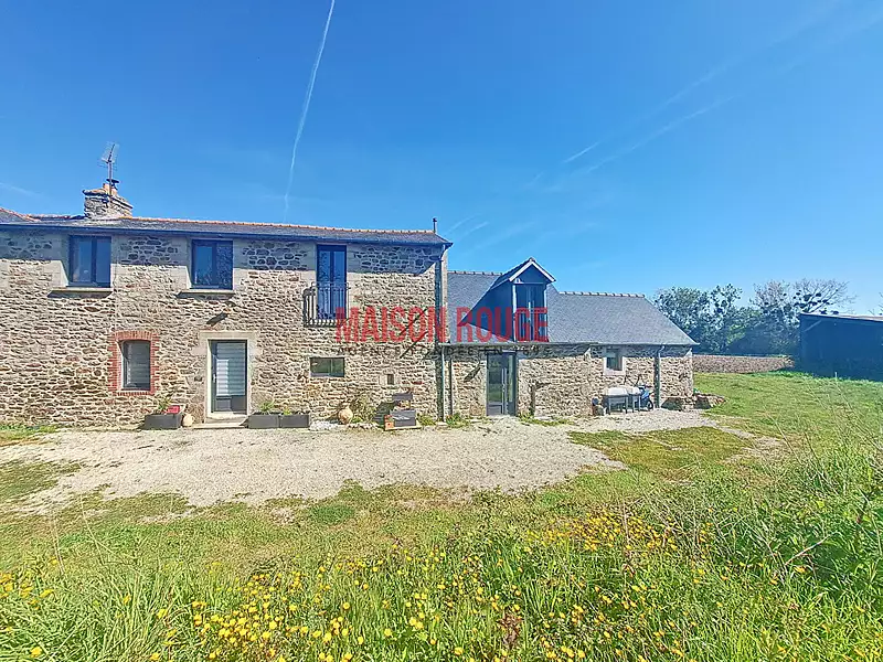 A 10kms des premières plages, charmante maison en pierres offrant au rez-de-chaussée un salon/séjour avec poêle à granulés, une cuisine aménagée et équipée donnant sur la terrasse, un dégagement vers une salle de bains avec wc et une buanderie. A l'étage, un palier dessert deux chambres, un grenier aménageable en suite parentale (évacuations prévues, sanitaires existants). Gîtes de 4/6 personnes attenant entièrement équipé. Une dépendance et un puits complètent cet ensemble. A ne pas manquer ! Prix FAI : 297 632 euros dont 4.80 % honoraires TTC à la charge de l'acquéreur.