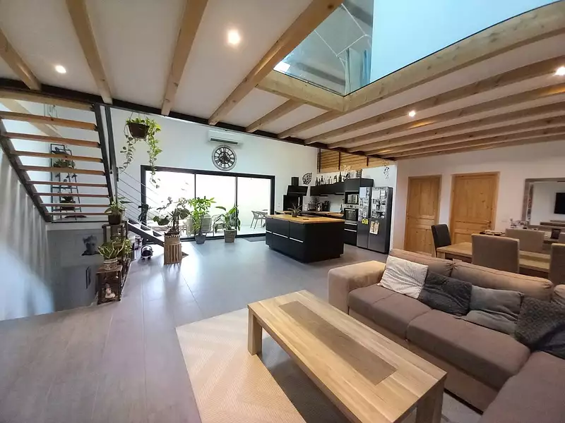 Découvrez cette magnifique Maison "Vigneronne" située à Pomerols 34810, entièrement rénovée, avec goût, alliant charme et modernité. Dans le cœur du village, cette propriété est un véritable coup de cœur qui saura séduire les amateurs d'espaces lumineux et aérés, offrant une qualité de vie incomparable. Dès votre entrée, vous serez conquis par le vaste garage de 88m², parfait pour les passionnés de bricolage ou les amateurs de voitures. Ce garage spacieux comprend également une cave à vins, idéal pour conserver vos meilleures bouteilles. L'espace est complété par un atelier fonctionnel, une entrée accueillante et une buanderie, maximisant ainsi votre confort et votre praticité au quotidien. Montez au premier étage et laissez-vous émerveiller par la grande pièce de vie de 65m². Ce vaste espace, baigné de lumière grâce à une grande baie à galandage, s'ouvre sur une terrasse couverte, à l'abri des regards, où vous pourrez profiter de moments de détente en toute intimité. La cuisine aménagée, moderne et fonctionnelle, est le lieu idéal pour concocter de délicieux repas en famille ou entre amis. Vous trouverez également une chambre spacieuse et une grande salle de bains, conçue pour votre confort, offrant à la fois élégance et fonctionnalité. Le deuxième étage vous réserve encore de belles surprises avec une mezzanine, parfaite pour un coin bureau ou un espace de lecture. Deux chambres supplémentaires vous attendent, idéales pour accueillir vos enfants ou vos invités, ainsi qu'une salle de jeux. Cette maison de ville à Pomerols est une opportunité unique qui allie le style loft à des prestations de qualité. Ne laissez pas passer cette chance de devenir propriétaire d'un bien d'exception, alliant confort et modernité. Agent commercial indépendant. Prix TTC et Honoraires à charge vendeur TTC. Inter-Med-Immo34 agence d'Agde - Christèle - Plus d'informations sur (réf. 3458145374)Afficher plus