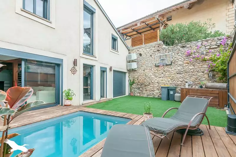 Dans le village dynamique de Roujan, venez découvrir cette maison unique, au style loft, de 160 m² habitables. Le bien offre, avec beaucoup de cachet, de beaux volumes dont un séjour de 60 m² et une suite parentale de 35 m². Ses atouts : un extérieur intimiste avec piscine chauffée et un garage. Proposition d'aménagement virtuel non contractuelle en dernière photo.